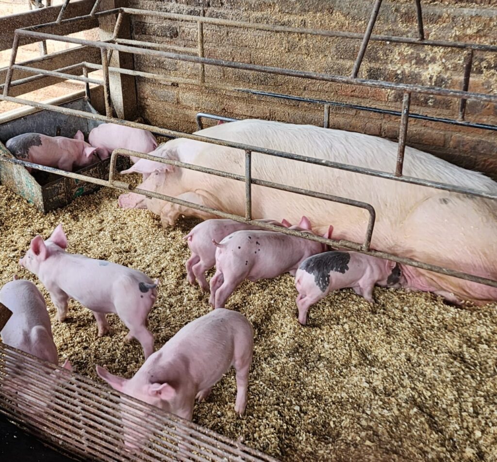 En cuanto a los: “Cerdos tenemos raza Pietrain y Landrace,  su comienzo fue a través de una cabaña de Buenos Aires, quienes  fueron nuestros proveedores, en grandes reproductores tanto machos como hembras”.