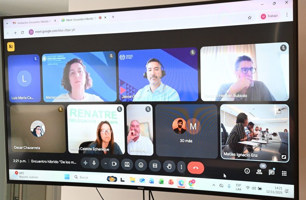 La actividad se desarrolló en modalidad híbrida, con la participación presencial del Directorio del RENATRE y representantes de la OIT en la sede central del organismo, mientras que las delegaciones provinciales, otros representantes de la OIT y ACNUDH asistieron de manera virtual.