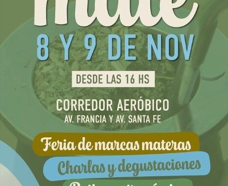 Buenos Aires, 6 de noviembre de 2025.-Este sábado 8 y domingo 9 de noviembre, en el Corredor Aeróbico de Bella Vista, en San Miguel (en Av. Francia y Av. Santa Fe), se llevará a cabo “La tarde del mate”, un encuentro para todos los amantes del mate, desde las 16 hs., con entrada libre y gratuita.