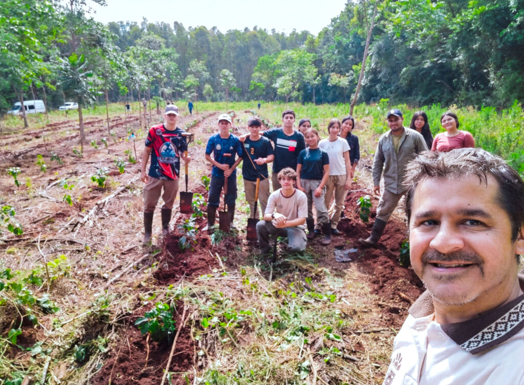En todos los casos se estableció un marco de plantación de 2,5 metros por 1,5 metros, con la premisa de integrar el café con árboles y avanzar en sistemas agroforestales que generen un ambiente protegido y biodiverso, reduciendo el riesgo de heladas y enfermedades. Cada sitio aprovechó las condiciones preexistentes. En la Escuela Agrotécnica de Eldorado, la plantación se realizó en una parcela previamente arborizada, diseñada originalmente para yerba mate en el año 2020, con hileras de árboles nativos -loro negro, cañafístola, cedro, incienso, anchico colorado y guatambú- distanciadas a 12 metros, lo que permitió integrar el café al líneo arbóreo.