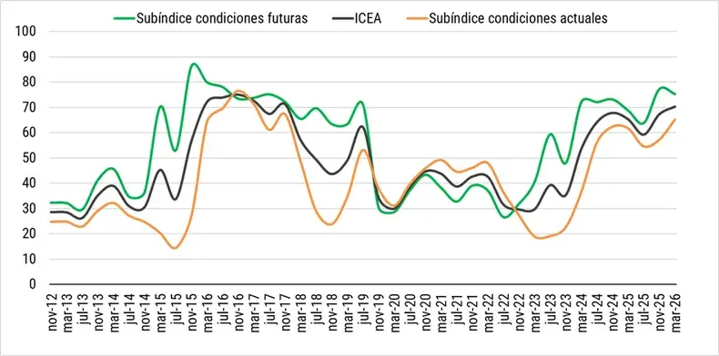 El subíndice de “Condiciones actuales” alcanzó los 65 puntos, con una suba del 13,8% respecto de noviembre, consolidando la tendencia positiva que se observa desde mediados de 2025.