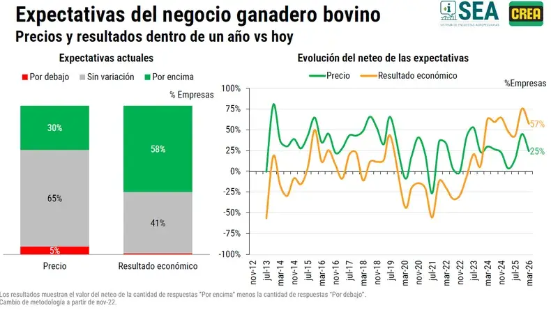 Y remarca: “El 58% de los empresarios ganaderos consultados tiene expectativas favorables sobre el resultado del negocio para el próximo año. Se trata de uno de los niveles más elevados de la serie histórica de la Encuesta SEA”.